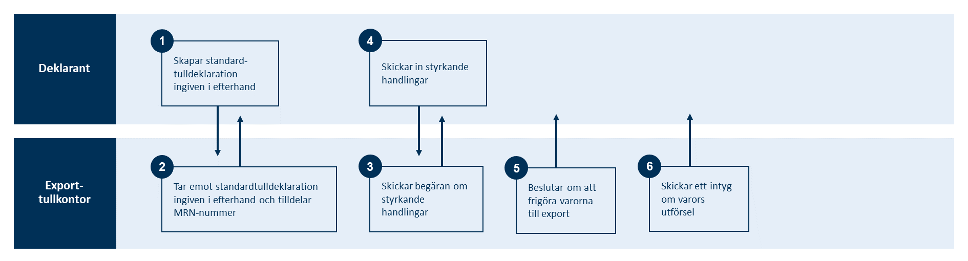 Processen vid standardtulldeklaration ingiven i efterhand för export