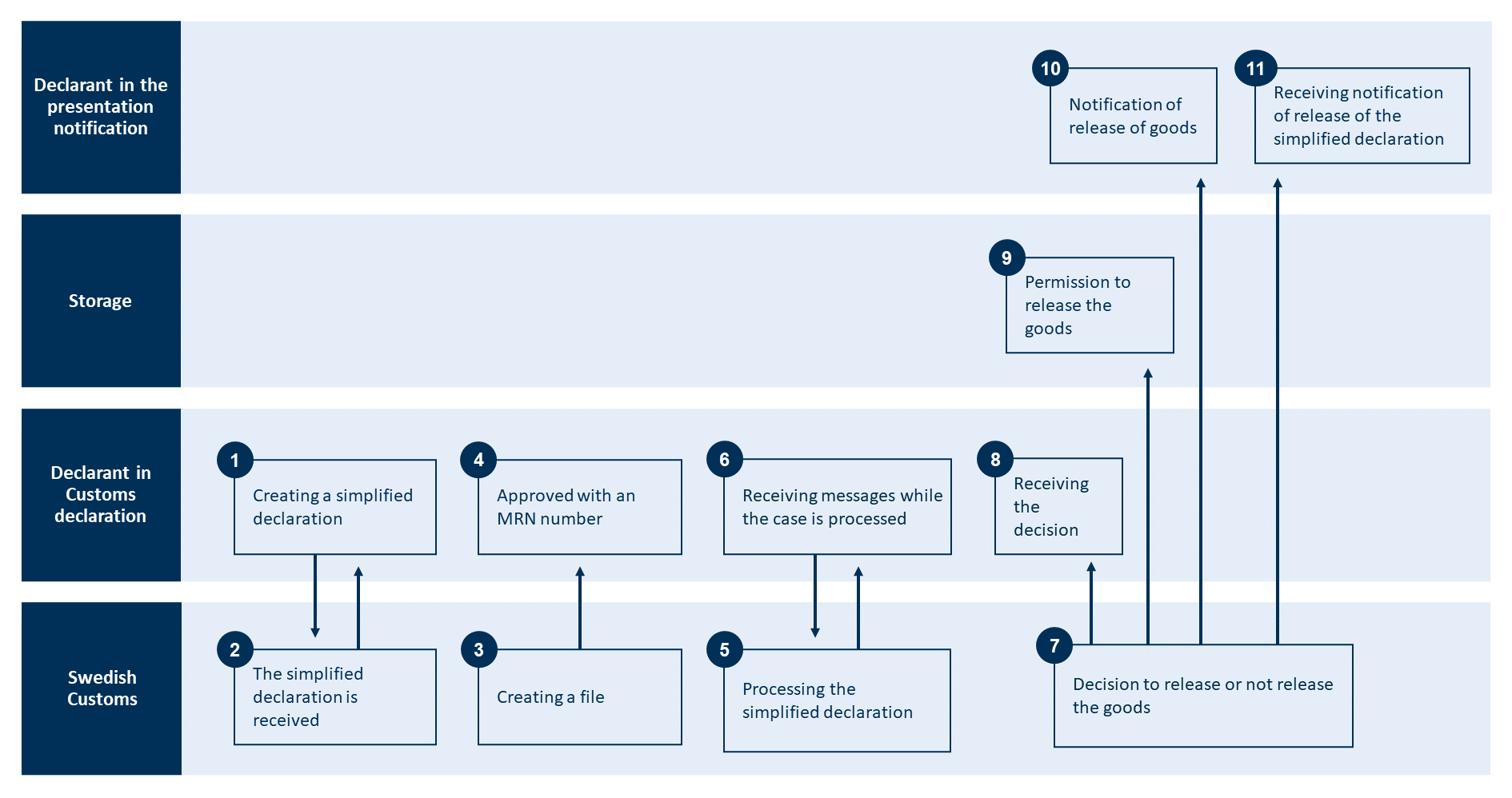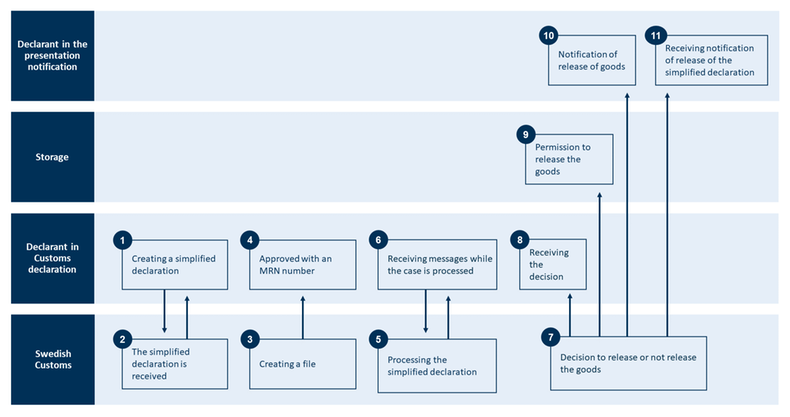 The image below describes how to lodge a simplified declaration. Under the image, you can read descriptions of what happens in each step.