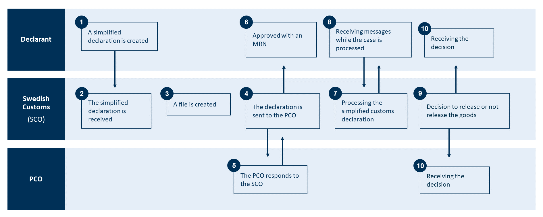 In the description below, it is stated that Swedish Customs will communicate with the declarant, regardless of whether the communication takes place directly with the declarant or via their representative.