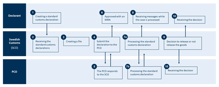 Swedish Customs (SCO) will now verify that the information in the customs declaration is correct and can form the basis of a decision in the matter. They will then forward the information in the declaration to the PCO.