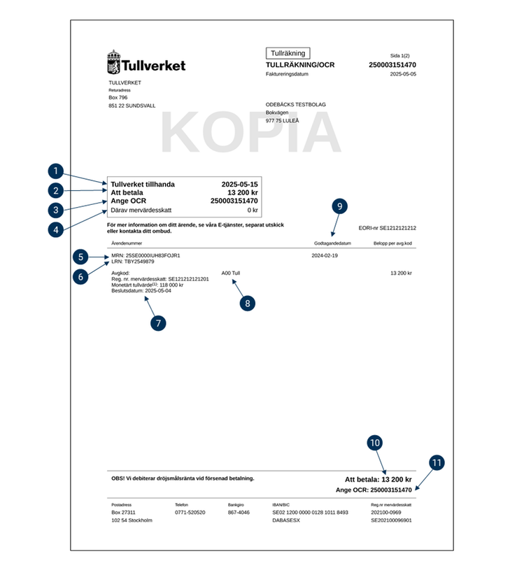 Please contact Swedish Customs if you know that you were supposed to receive a customs invoice but did not.