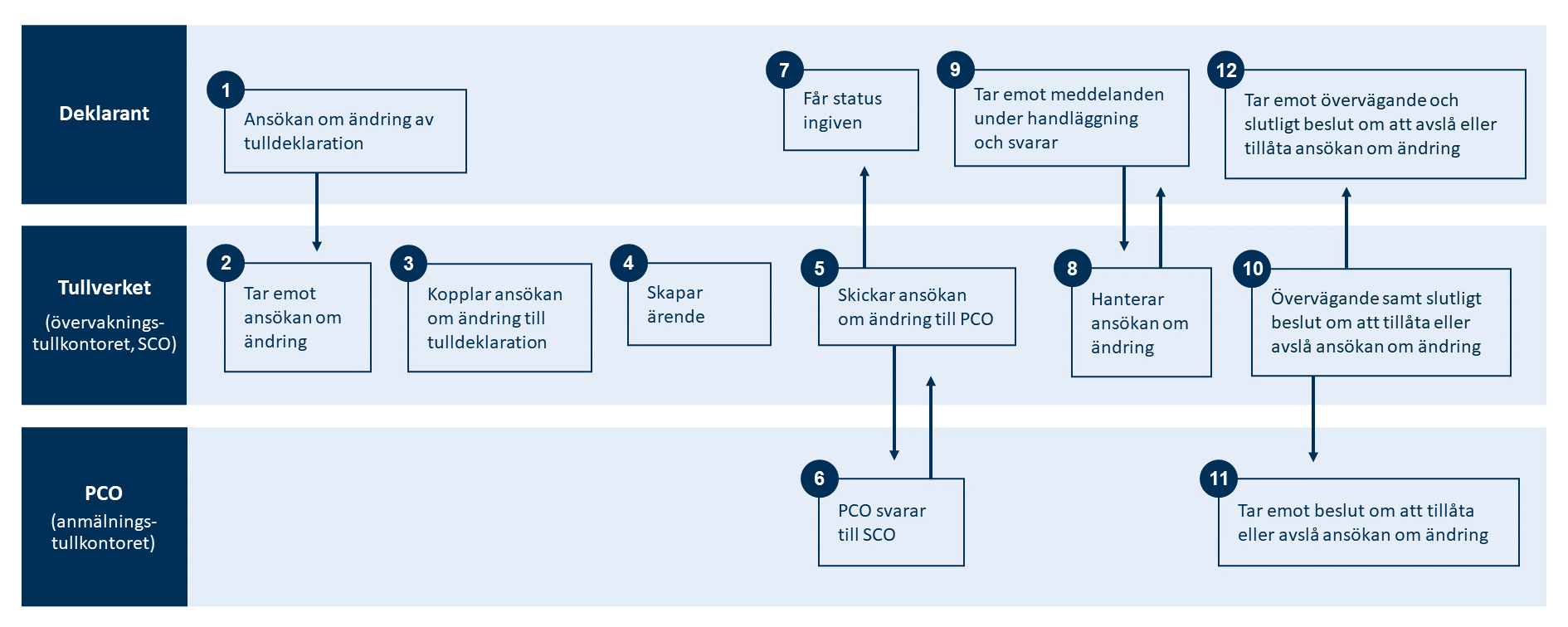 Processen vid centraliserad klarering – ändring av standardtulldeklaration, förenklad deklaration eller kompletterade deklaration efter det att varorna frigjorts